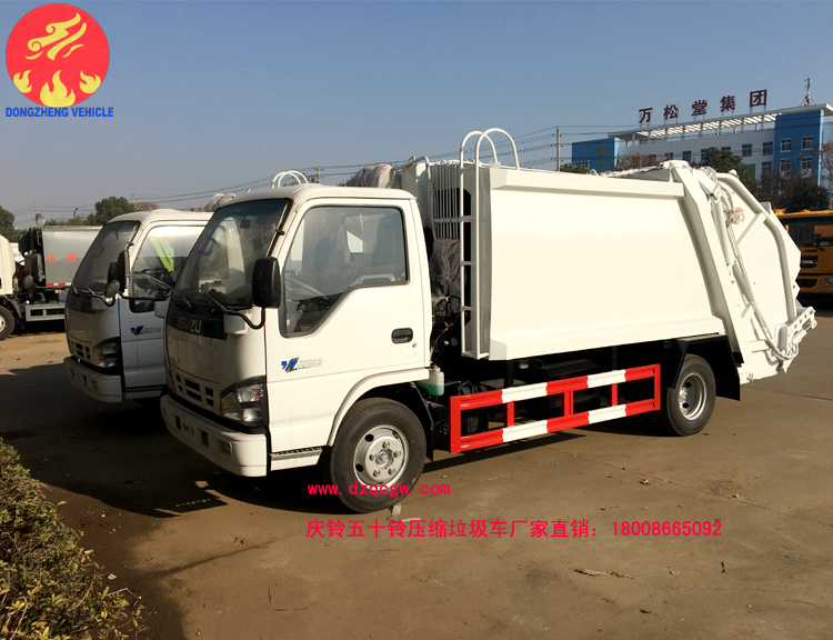 慶鈴五十鈴國五壓縮式垃圾車,采用慶鈴600P輕卡底盤,慶鈴130馬力發(fā)動機(jī),尼龍?zhí)ィ珹BS。廂體材料為武鋼優(yōu)質(zhì)炭鋼,厚度為邊5mm,廂體容積為5-6立方米。由裝料機(jī)構(gòu)、壓縮機(jī)構(gòu)、卸料機(jī)構(gòu)、油泵、油箱、控制閥等組成的液壓機(jī)構(gòu)組成。裝料機(jī)構(gòu)由支架、連桿機(jī)構(gòu)、凸輪、掛鉤等組成,在油缸作用下,將垃圾桶內(nèi)的垃圾自動翻轉(zhuǎn)倒入料斗內(nèi)。主要用于收集與轉(zhuǎn)運(yùn)生活垃圾。