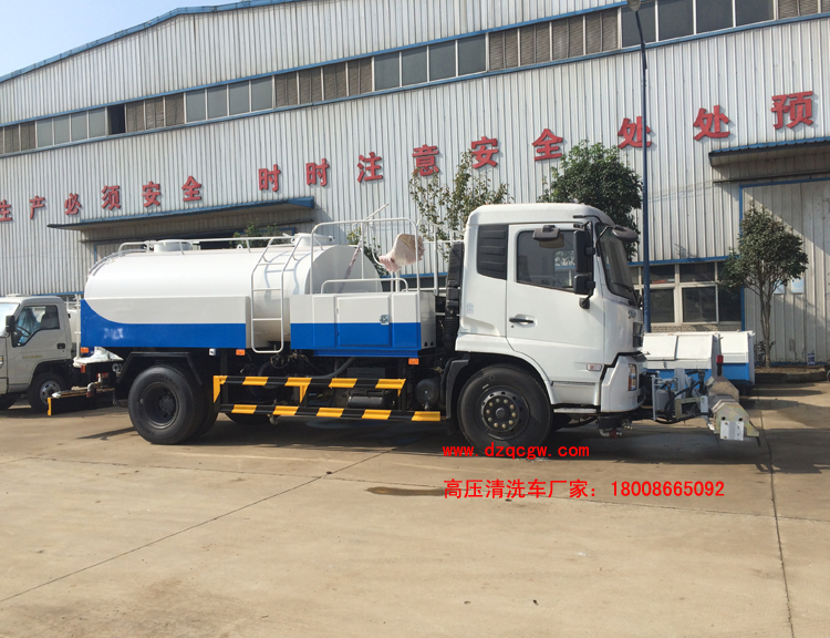 P.S. 高壓清洗車可加裝灑水裝置,安裝綠化灑水炮、前沖、后灑、側噴,可進行綠化灑水、噴霧、壓塵、高壓沖洗路面等。高壓清洗車還可加裝吸污功能,集清洗、吸污于一體。選裝普通長警燈或圓形警燈,LED箭頭燈,低水位報警裝置。