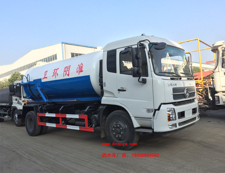吸污部分主要配備:國產多路閥、油缸;國產高質量真空泵,油水分離器,四通閥,洗手裝置。罐體后封頭球閥控制自流口1個,1個視污窗,1根7米吸糞管,普通油漆。一次性成型舉升式罐體,罐體兩則油缸,后蓋液壓開啟,機械鎖緊,帶液位報警。主要用于下水道、雨水井、檢查井、化糞池及各種溝渠內的污泥、糞便或石油化工廠污水池淤積物的抽吸、裝運和排卸。