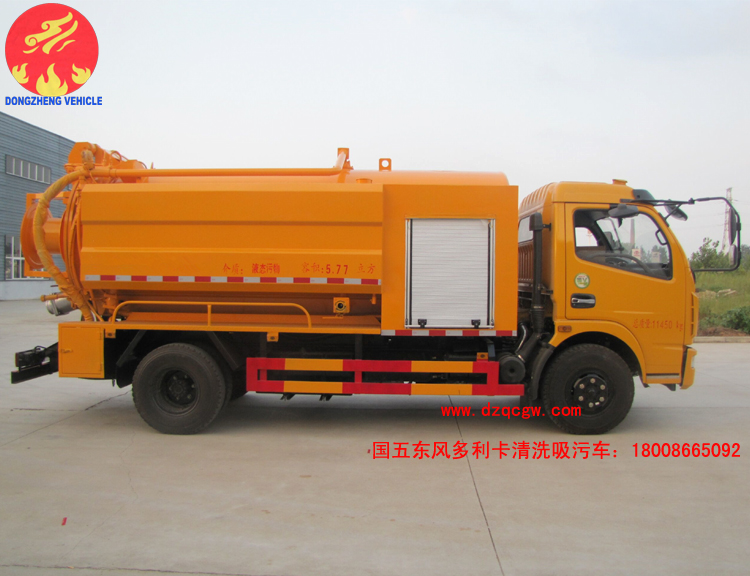 國五東風多利卡D7新款清洗吸污車(污水罐5.77方)