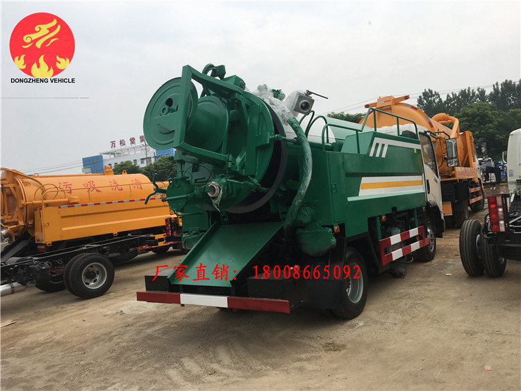 該車用途為吸污清洗,主要裝置為水罐、污罐。水罐罐體有效容積:2.4立方米,運輸介質:水,密度:1000千克/立方米,罐體外形尺寸(長×直徑)(mm):1500×1200.吸污罐罐體有效容積:3立方米,運輸介質: 液態污物,密度:800千克/立方米,罐體外形尺寸(長×直徑)(mm):1600×1200。水罐和吸污罐為兩個獨立罐體,清洗功能時用水罐,吸污功能時用吸污罐,清洗吸污兩種功能不同時使用.側,后防護裝置材料材質為碳鋼/Q235B;與副梁采用螺栓加焊接連接;后部防護斷面尺寸(mm):100×50,后部防護離地高度(mm):470.罐體顏色可變化,文字噴涂位置可變化,隨底盤選裝駕駛室;ABS型號為3631010-C2000,生產廠家為東科克諾爾商用車制動系統(十堰)有限公司。