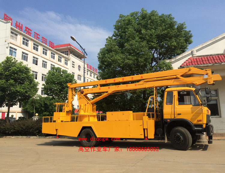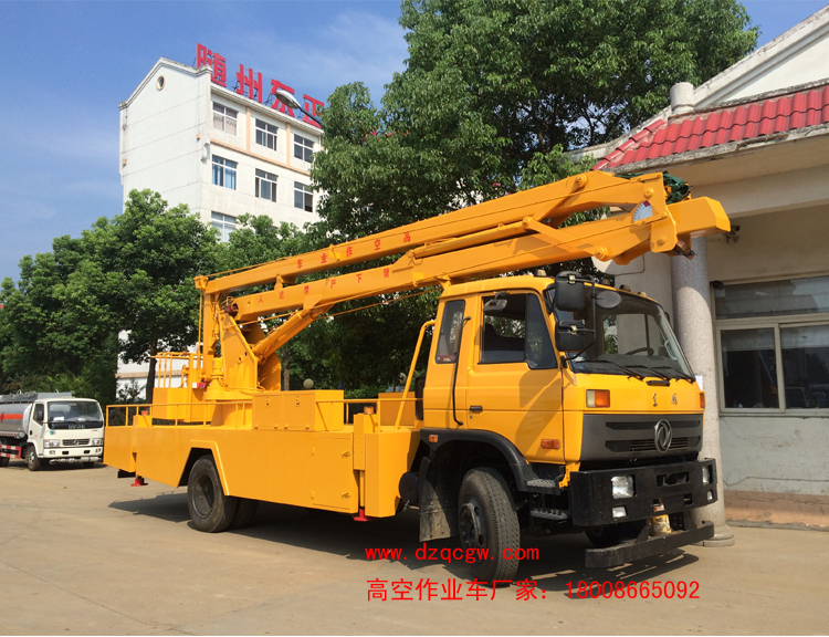 我公司高空作業車的主要車型有:東風福瑞卡高空作業車,東風多利止產高空作業車,東風145高空作業車,東風153高度作業車,東風天錦高空作業車。舉升高度有12,14,16,18,20,22,24米。排放標準有國四及國五。