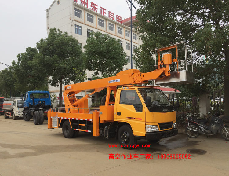公司江鈴單排17米高空作業(yè)車出廠,該車采用江鈴順達(dá)單排駕駛室3360mm軸距,江鈴115馬力柴油國五發(fā)動機(jī),五檔變速箱,前橋1.5噸,后橋3噸,油,帶排氣制動,7.00R16LT鋼絲胎