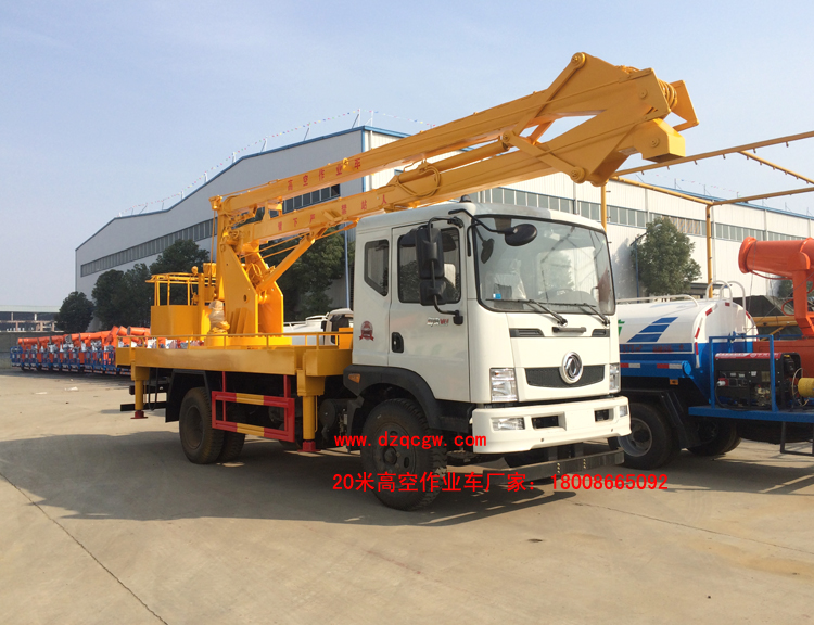 東風御虎18米20米高空作業車,排半駕駛室,3950mm或4500mm軸距,東風6檔變速箱,3.6噸前橋,8噸后橋,9.00-20輪胎。