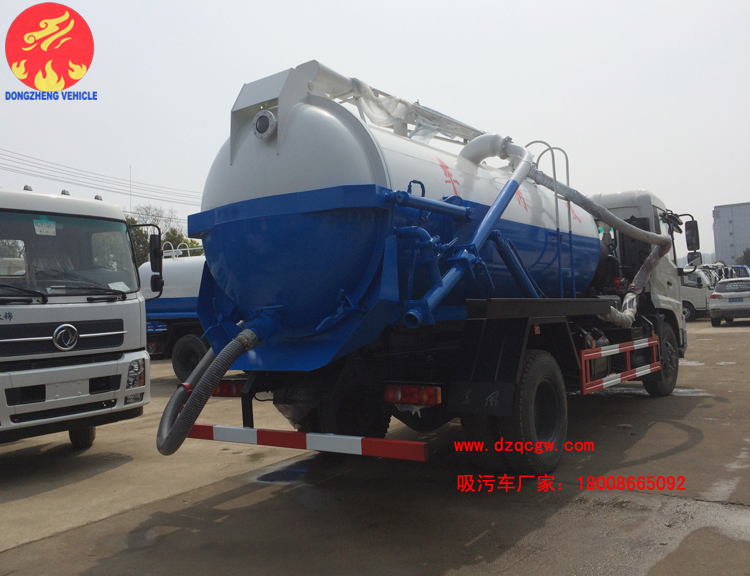 我公司生產(chǎn)的東風(fēng)天錦吸污車(chē)整車(chē)型號(hào)SZD5160GXWD5V,底盤(pán)采用東風(fēng)天錦單橋底盤(pán),國(guó)五康機(jī)180馬力發(fā)動(dòng)機(jī),罐體有效容積9.45方,罐體一次性成型,罐體液壓舉升,后蓋液壓打開(kāi)自卸,標(biāo)準(zhǔn)配置雙聯(lián)泵,而水循環(huán)式吸污泵,真空度更高,垂直吸度更高。