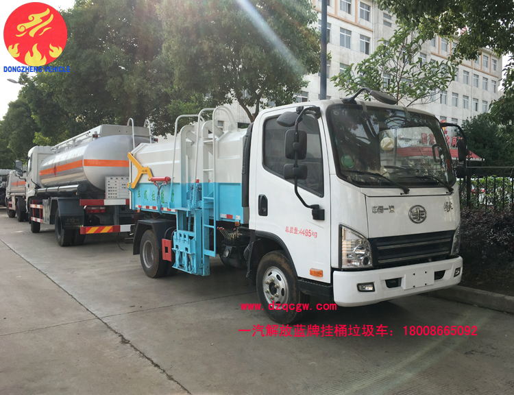 下圖為我公司出口的解放藍牌小型自裝卸式垃圾車