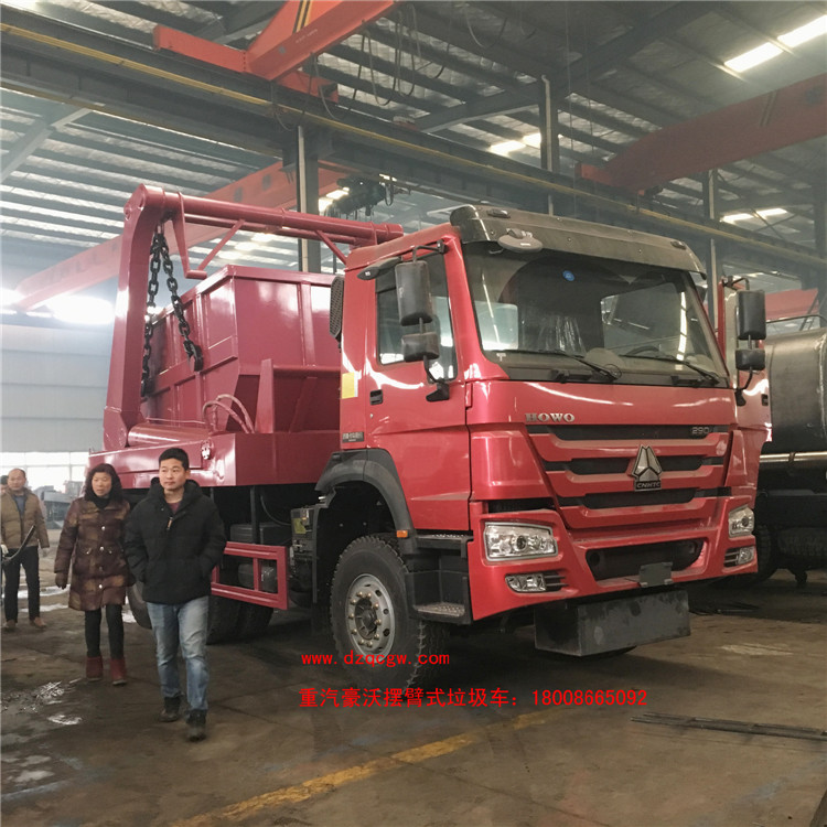 15噸重汽豪沃?jǐn)[臂式垃圾車出廠