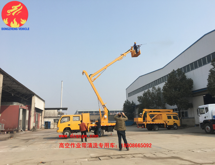 出口至孟加拉國東風12米右駕高空作業帶清洗車已調試完畢等待出廠
