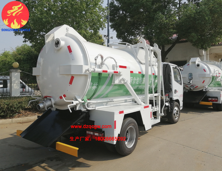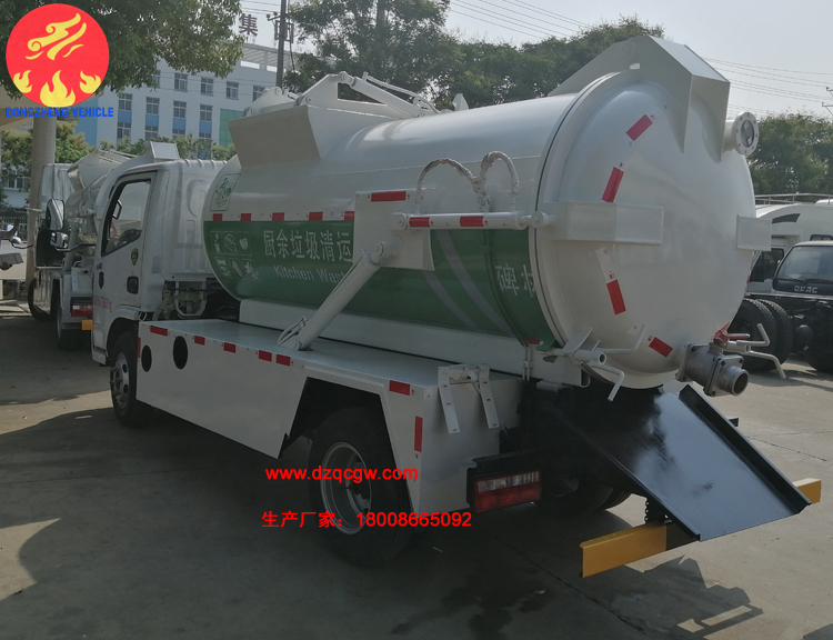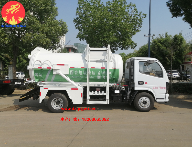 此款餐廚垃圾車是新車型,采用朝柴130馬力國六柴油發動機,鋼絲胎帶ABS。