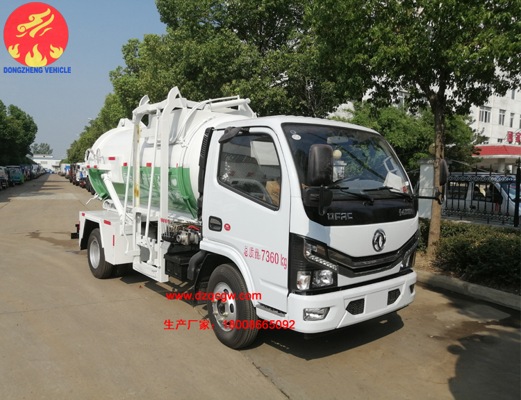 上裝我公司配備渣液分離和推鏟,舉升,排污口,后門液壓開啟,整個罐體確保不滲漏。聯桿提升機,可以配備120L或240L垃圾桶,便于操作。