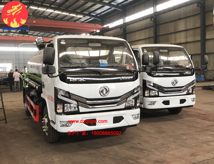 該批綠化噴灑車采用標準國六底盤,3308mm軸距,柴油115馬力國六發動機,5檔箱,鋼絲胎,帶ABS。罐體實際容積約5立方米。