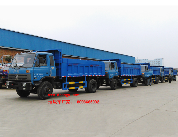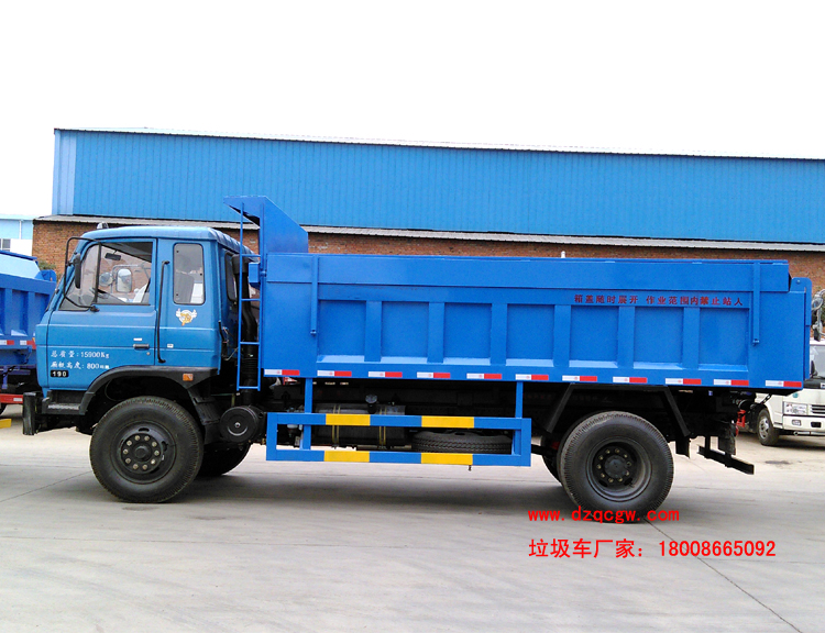 車輛名稱: 東風153自卸式垃圾車 整車型號: SZD5164ZLJE4(炎帝牌)