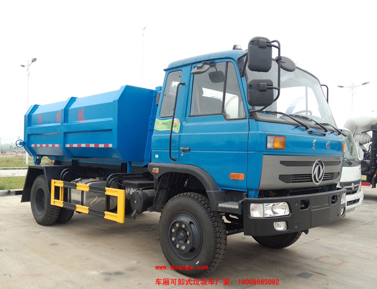 產品介紹:車廂可卸式垃圾車也叫拉臂式垃圾車,是一種采用高新設計可伸縮的鉤臂,實現垃圾廂的二次吊裝,自吊上放下,可自行傾倒垃圾。 該車結構簡單,操作穩定方便,裝卸效率高,機械化程度高,節省人力。一車可帶多個大廂,在裝卸的運輸過程中可有效地避免二次污染。