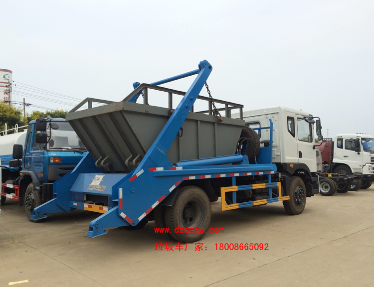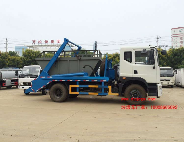 上裝說明: 產品介紹:擺臂式垃圾車加裝統一配套液壓舉升總成,通過左右兩臂裝運全國統一擺臂式垃圾斗,可一車配多廂,帶自卸功能,可自行傾倒垃圾。 可加裝密封蓋,防止泄露飛揚污染,在裝卸的運輸過程中可有效地避免二次污染,以適應不同環境使用要求,該車結構簡單,操作穩定方便,裝卸效率高,機械化程度高,節省人力,采用國內領先技術及軍工企業配件,質量可靠,安全穩定,可由生產廠家為用戶提供垃圾廂圖紙,協助用戶設計垃圾廂。