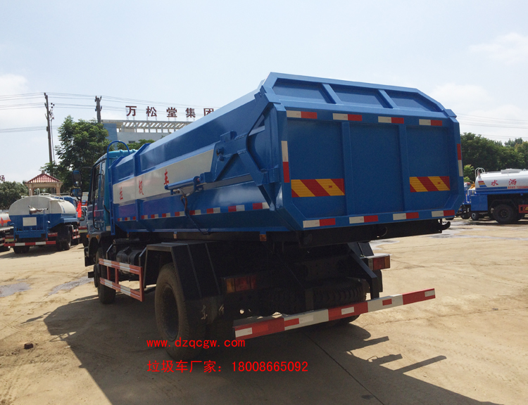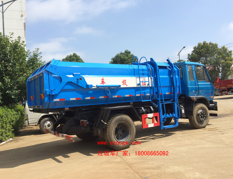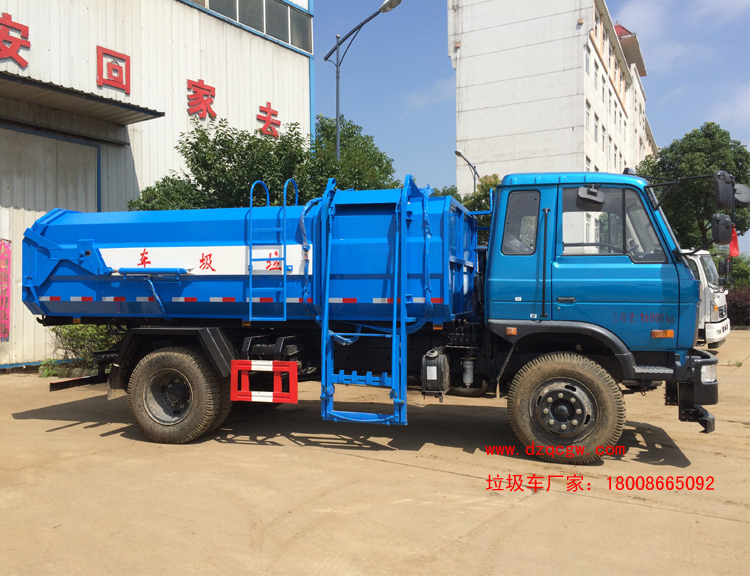 組成部分:上裝部分由密封式垃圾廂、液壓系統、操作系統組成。舉升油制缸(2支)垃圾廂可自吊上放下,上下一次工作循環時間≤50S。該掛桶式垃圾車的 特點是一個車能配幾十個垃圾廂,能實現一臺車與多個垃圾廂聯合作業,循環運輸,充分提高了車輛的運輸能力,特別適用于短途運輸,如環衛部門對城鎮垃圾的清 理、運輸等。
