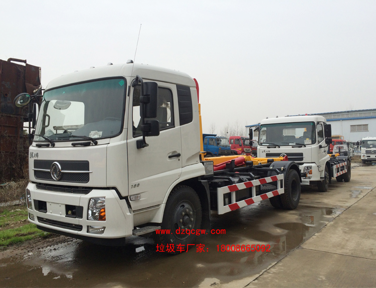 車輛名稱: 東風(fēng)天錦勾臂垃圾車(8方) 整車型號(hào): SZD5160ZXXD5(炎帝牌)