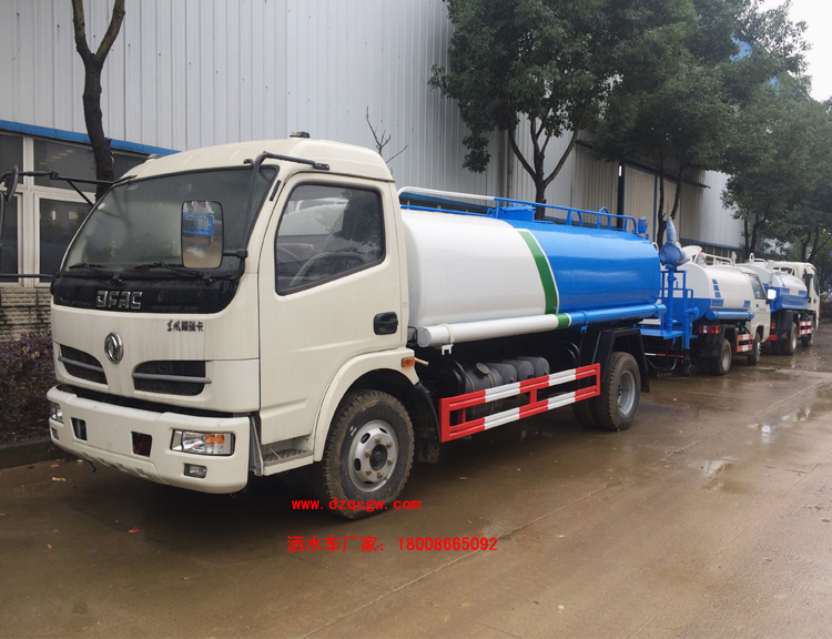改裝部分:標配前沖、后灑、側噴、工作平臺、綠化高炮、自流閥、消防接口,輸水管3米2根,8噸以上罐體帶高位花灑2個,億豐泵或金龍泵,控制方式為手動。選裝氣動閥門控制;高位花灑,大鴨嘴,藥盤,罐體側面加裝萬向可調節噴頭,罐體后部壓塵噴灑裝置,兩個圓警燈或長警燈,LED箭頭燈,泵可選裝威龍泵或農藥噴霧裝置。