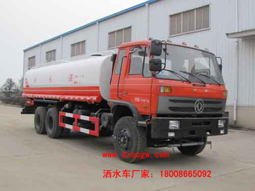 底盤說明:東風153型老款平頂駕駛室,玉柴或康機國四發(fā)動機,陜齒八檔變速箱,280mm雙層車架,5T/10T前后橋,軸距4350+1300mm,10.00R20鋼比胎,帶斷氣剎,動力轉(zhuǎn)向,排氣制動。水罐有效容積:16立方米。