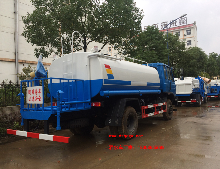 改裝部分:標配前沖、后灑、側噴、工作平臺、綠化高炮、自流閥、消防接口,輸水管3米2根,8噸以上罐體帶高位花灑2個,億豐泵或金龍泵,控制方式為手動。選裝氣動閥門控制;高位花灑,大鴨嘴,藥盤,罐體側面加裝萬向可調節(jié)噴頭,罐體后部壓塵噴灑裝置,兩個圓警燈或長警燈,LED箭頭燈,泵可選裝威龍泵或農藥噴霧裝置。