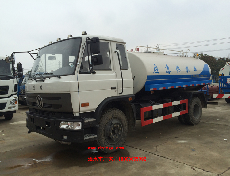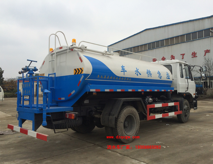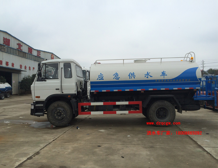 改裝部分:標配前沖、后灑、側噴、工作平臺、綠化高炮、自流閥、消防接口,輸水管3米2根,8噸以上罐體帶高位花灑2個,億豐泵或金龍泵,控制方式為手動。選裝氣動閥門控制;高位花灑,大鴨嘴,藥盤,罐體側面加裝萬向可調節噴頭,罐體后部壓塵噴灑裝置,兩個圓警燈或長警燈,LED箭頭燈,泵可選裝威龍泵或農藥噴霧裝置。