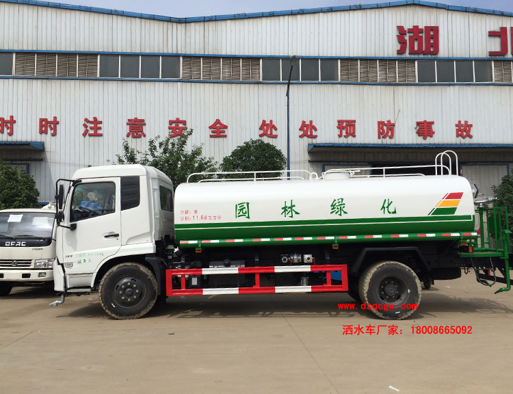 改裝部分:標配前沖、后灑、側噴、工作平臺、綠化高炮、自流閥、消防接口,輸水管3米2根,8噸以上罐體帶高位花灑2個,億豐泵或金龍泵,控制方式為手動。選裝氣動閥門控制;高位花灑,大鴨嘴,藥盤,罐體側面加裝萬向可調節噴頭,罐體后部壓塵噴灑裝置,兩個圓警燈或長警燈,LED箭頭燈,泵可選裝威龍泵或農藥噴霧裝置。