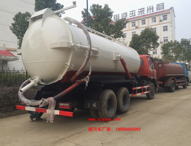 底盤說明:東風后雙橋新款駕駛室,4350+1300mm軸距,康明斯220馬力國五發(fā)動機,陜齒八檔變速箱,5噸前橋,10噸雙后橋,11.00R20鋼絲胎,動力轉向,斷氣剎。罐體有效容積:15.48立方米,介質(zhì):液態(tài)污物,罐體外形尺寸(直段長×直徑)(mm):5600×1950。